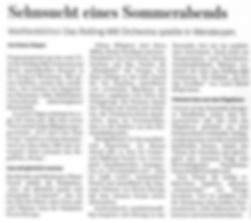 Bericht der Wolfenbütteler Zeitung am 20. August 2013 über das Konzert des Orchesters in der St. Georg Kirche Wendessen am 16. August 2013. Der Bericht ist ein einzigartiges Portrait des Rolling Mill Orchestra.